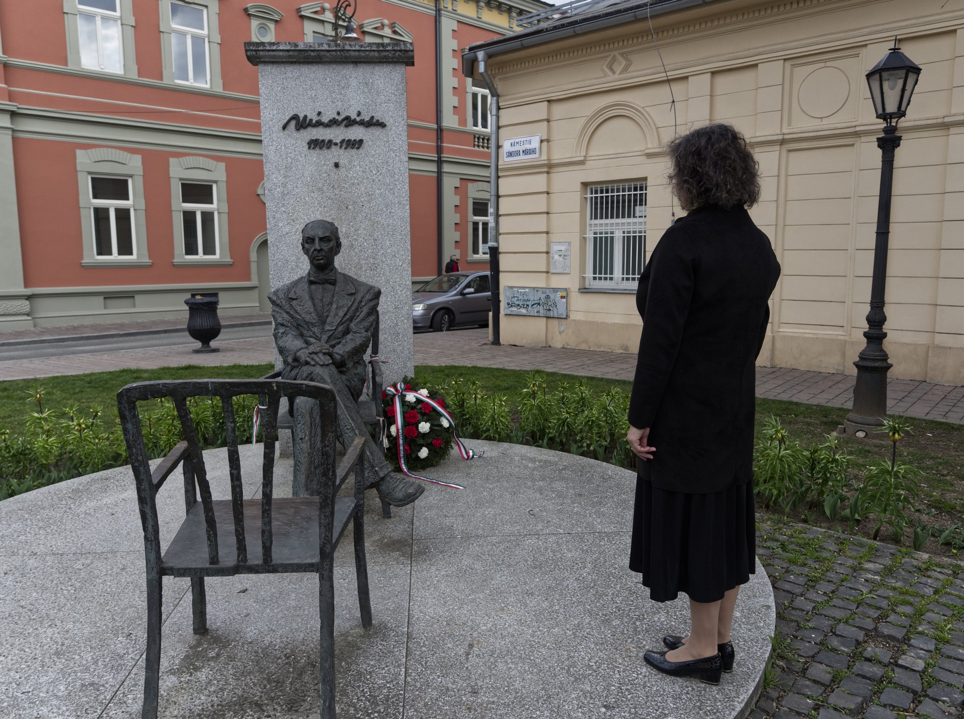 Dr. Hetey Ágota főkonzul koszorút helyezett el Márai Sándor kassai szobránál, az író születésének 121. évfordulója alkalmából.